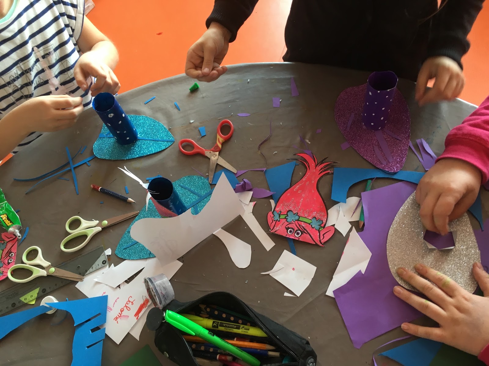 Activité que l'on est en train de faire, le côté paillette à de suite beaucoup plu et ils avaient aux choix plusieurs têtes de Trolls poppy, branch, DJ suki et guy diamant
