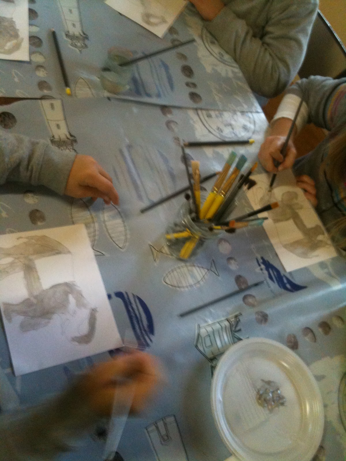 Les éléphants une fois sec ils ont pu les décorer aux stylos noir et feutres comme ils le voulaient.